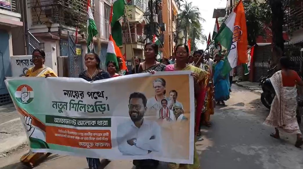 শিলিগুড়ির ১৬ নম্বর ওয়ার্ডে কংগ্রেসের জোরদার প্রচার, অলোক ধারার বর্ণাঢ্য শোভাযাত্রা