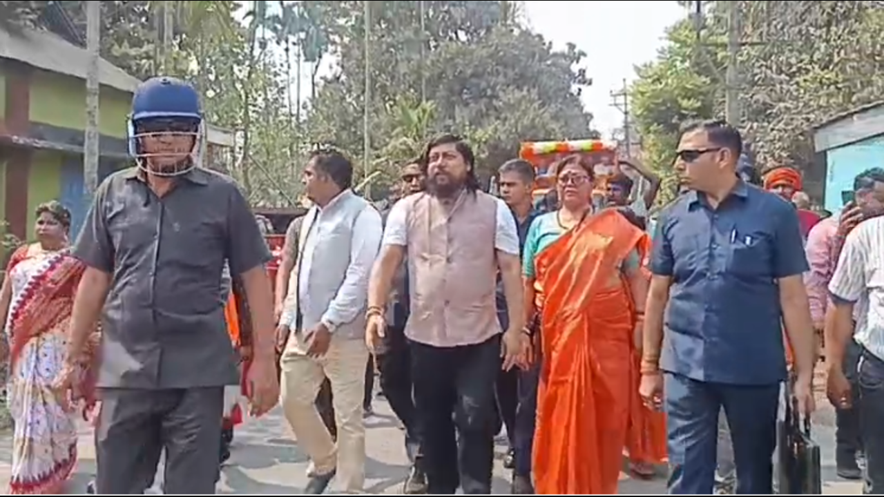 পুলিশি ব্যারিকেডের মধ্যে খাগড়বাড়ি হয়ে রওনা হল বিজেপির পরিবর্তন যাত্রার রথ