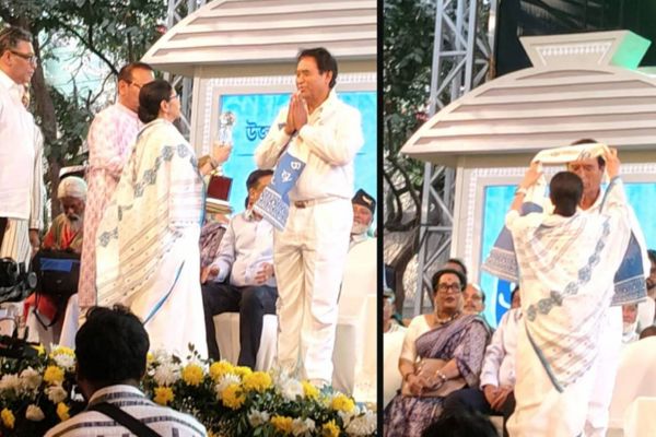 ভাষা দিবসে দেশপ্রিয় পার্কে চমক,মুখ্যমন্ত্রীর হাত থেকে ‘বঙ্গবিভূষণ’ পেলেন অনন্ত মহারাজ