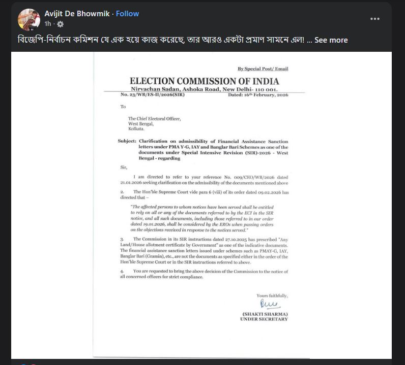 ‘বিজেপি-নির্বাচন কমিশন যে এক হয়ে কাজ করেছে, তার আরও একটা প্রমাণ সামনে এল! ‘ ফেসবুকে সরব অভিজিৎ দে ভৌমিক