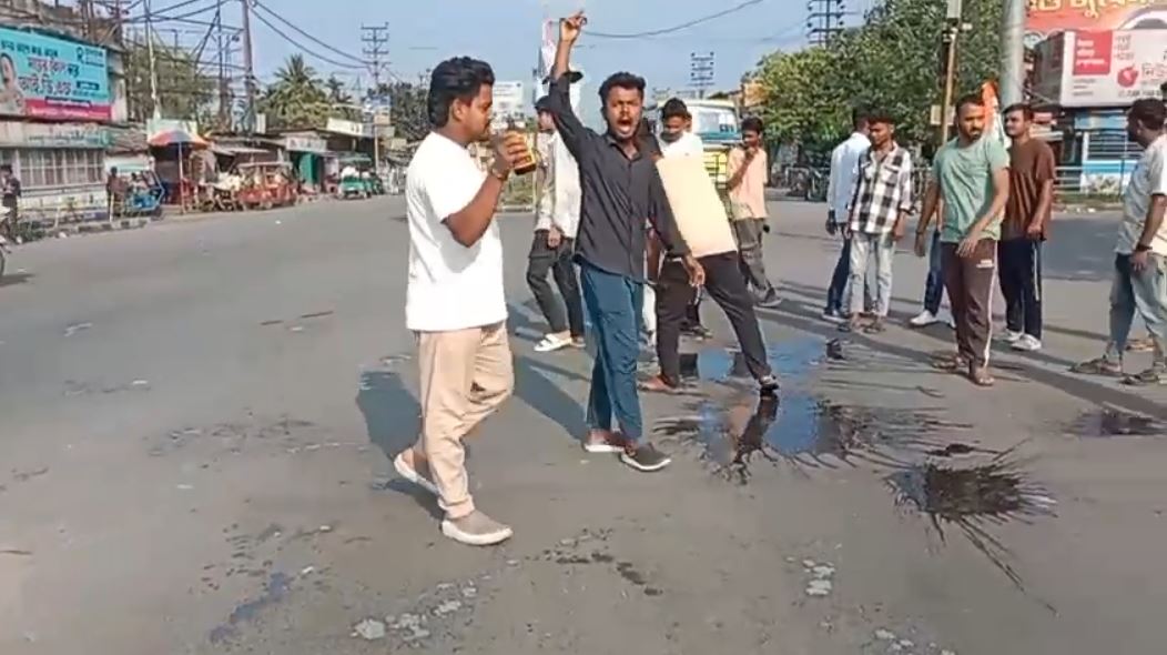 মিঠুনের রোড শোর পর খাগড়াবাড়িতে বিক্ষোভ, ফিনাইল ছিটিয়ে প্রতিবাদ তৃণমূল ছাত্র পরিষদের