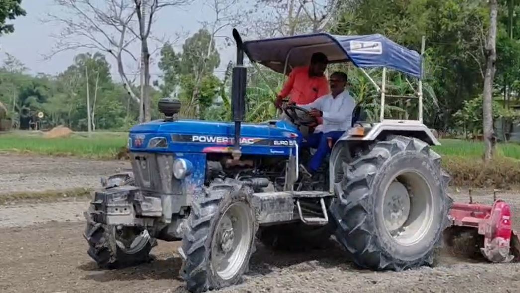মাঠে নেমে ট্রাক্টর চালালেন তৃণমূল প্রার্থী অভিজিৎ দে ভৌমিক, কৃষকের পাশে থাকার বার্তা
