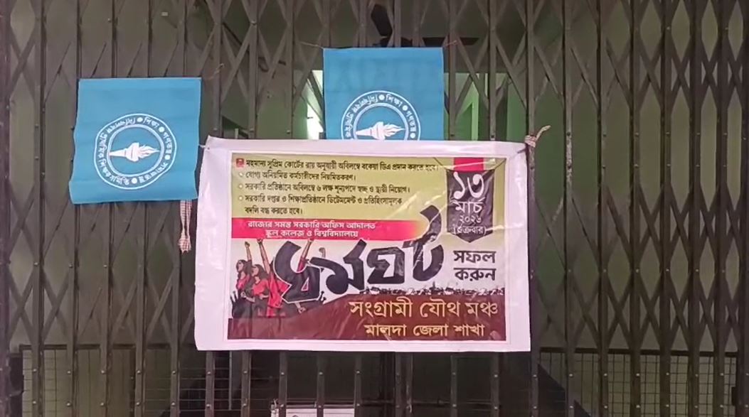 ডিএ রায় কার্যকর করার দাবিতে ধর্মঘট,প্রাথমিক শিক্ষা সংসদ দপ্তরে তালা,মালদায় আন্দোলনে সরব সংগ্রামী যৌথ মঞ্চ